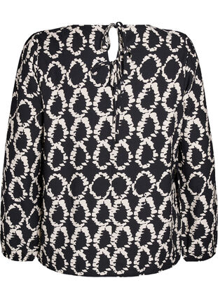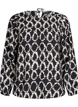 Bluse mit Allover-Muster und Rundhalsausschnitt, der im Nacken mit zwei Schleifen geschlossen wird. Die Bluse hat lange Ärmel mit elastischen Bündchen und eine normale Passform. Die Bluse enthält 92 % LENZING™ ECOVERO™ Viskosefasern, die natürliche Weichheit und Fall unterstützen.
