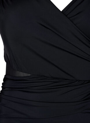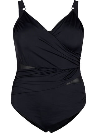 Toller Badeanzug mit Wickeleffekt und Drapierung, welcher eine tolle Figur schafft. Er hat justierbare Träger und einen runden Ausschnitt auf dem Rücken.