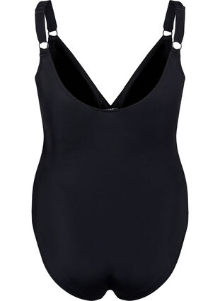 Der Badeanzug hat wattierte Schalen ohne Bügel.