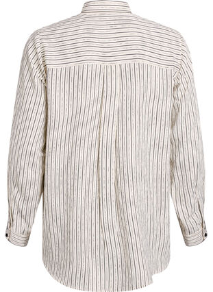 Bluse aus einem weichen und leichten Stoff mit 70% LIVAECO™ Viskose und einem dezent variierenden Streifendesign, bei dem ungleichmäßige Linien für eine interessante Textur eingewebt sind. Die Bluse hat eine normale Passform mit einem klassischen Hemdkragen, Knopfleiste auf der Vorderseite und lange Ärmel mit Manschetten für einen eleganten Look.