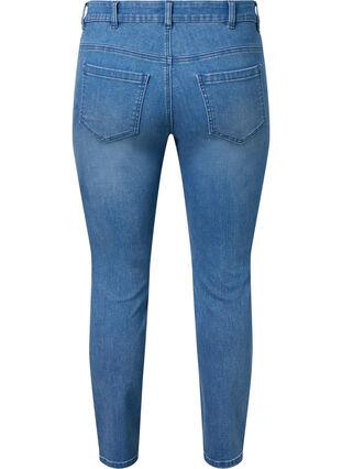 Slim Fit Jeans mit normaler Taillenhöhe, die aus einer dehnbaren Baumwollmischung gefertigt ist. Die Hose ist knöchellang und hat eine feminine Stickerei am Bein.