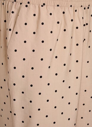 Hose aus weicher Viskosequalität aus 85 % LIVAECO™ Viskose mit dezentem Punktemuster. Die Hose hat eine hohe Taille mit elastischem Bund, seitliche Eingrifftaschen und eine lockere Passform mit geraden Beinen.