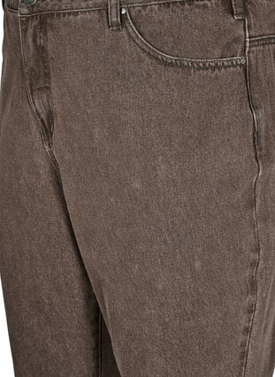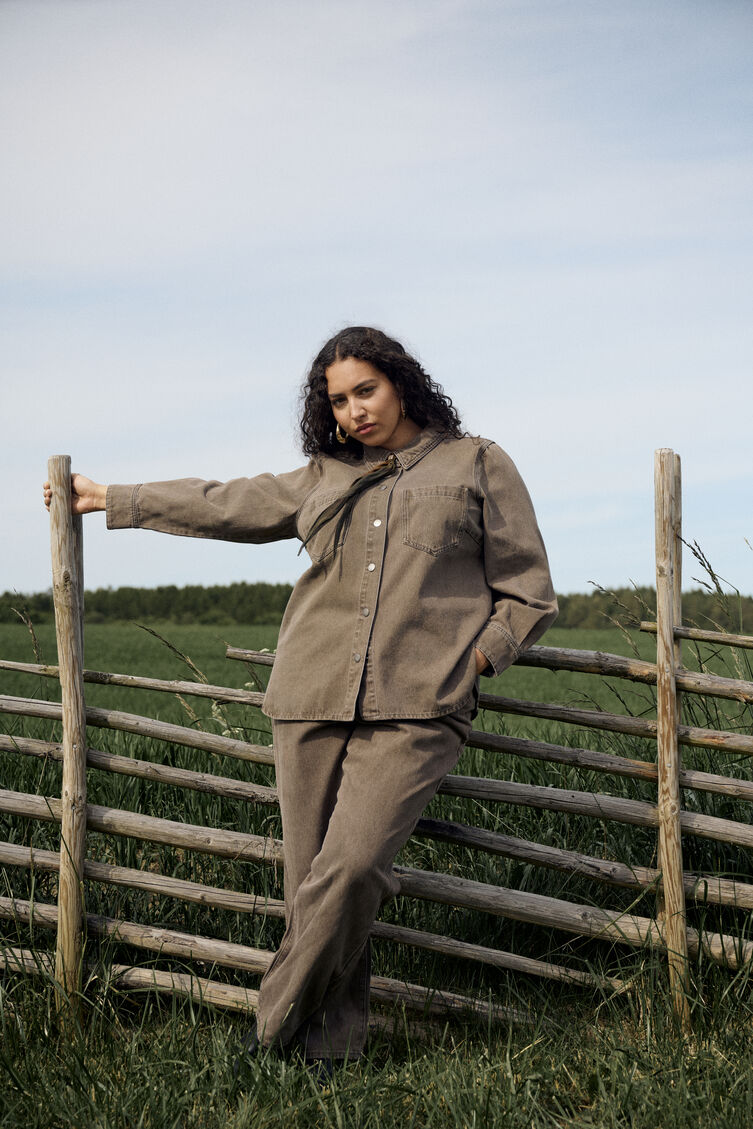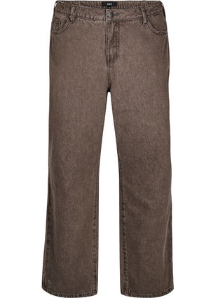 Jeans mit geradem Schnitt, die von der Hüfte bis zum Saum eine gerade Silhouette zaubern. Die Hose hat eine hohe Taille mit Gürtelschlaufen, ein klassisches 5-Pocket-Design und einen Knopf- und Reißverschluss auf der Vorderseite. Hergestellt aus farbigem Baumwolldenim ohne Stretch.