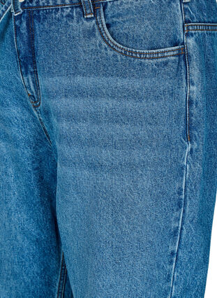 Jeans aus 100% Baumwolle mit hoher Taille und einem schmalen Bindegürtel. Diese Jeans hat ein gerades Bein und wird mit einem Reißverschluss und einem Knopf geschlossen.
