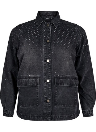 Jeansjacke mit Strasssteinen und großen Taschen auf der Vorderseite