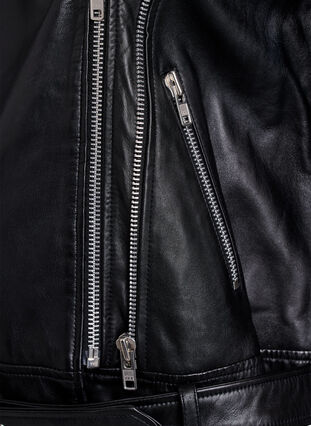 Zeitlose Bikerjacke aus weichem, echtem Leder mit einer starken Attitüde. Die zwei asymmetrischen Reißverschlüsse vorne geben dir verschiedene Möglichkeiten zum Schließen und unterstreichen den edgy Look. Die Jacke hat einen klassischen Kragen mit Druckknöpfen, dekorative Schulterriemen, auffällige Metallreißverschlüsse an den Taschen und Ärmeln und einen verstellbaren Gürtel in der Taille.