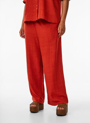 Locker sitzende Hose mit weitem Schnitt, hoher Taille mit Gummibund und Seitentaschen. Diese Hose besteht aus 100 % recyceltem Polyester mit Melange-Struktur.
