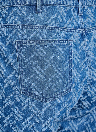 Hoch taillierte Mom-Fit-Jeans aus 100 % Baumwolle mit Ton-in-Ton-Strukturmuster und einem gewaschenen, leicht abgenutzten Look. Diese Jeans hat klassische Gürtelschlaufen, Vorder- und Gesäßtaschen und ein verstellbares, inneres Gummiband in der Taille, damit du die Passform easy anpassen kannst. Die Hose ist an Hüfte und Oberschenkeln weit und wird zu den Knöcheln hin schmaler.