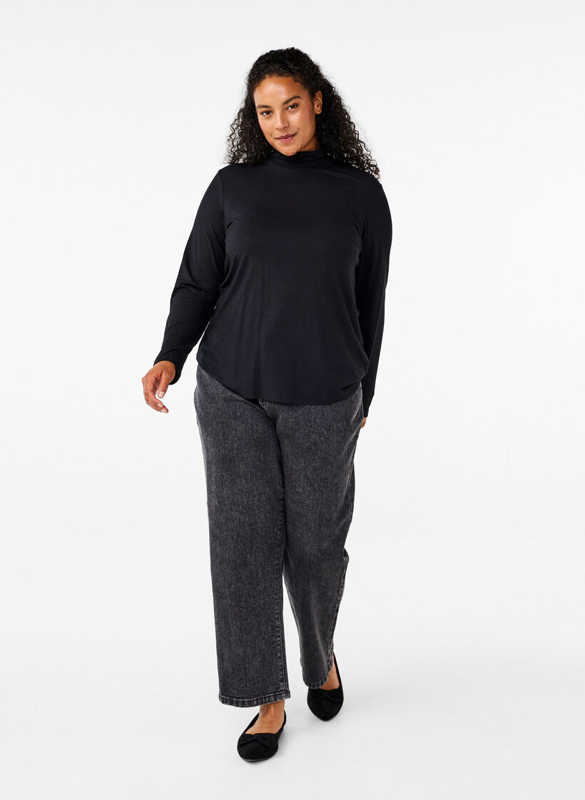 Jeans in gerader Passform mit Bindegürtel, Schwarz, Model