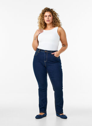 Klassische Jeans aus superbequemer Baumwollqualität. Sie hat ein Slim Fit Design und eine hohe Taille, sowie Taschen und Gürtelriemen. Ein tolles Detail sind die sichtbaren Nähte, die für einen coolen Kontrast sorgen.