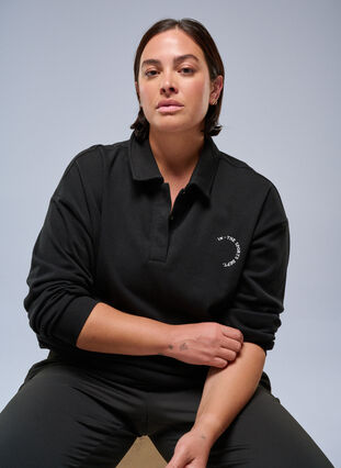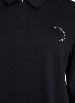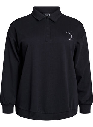 Sweatshirt aus einem weichen und bequemen Baumwollmix mit einem kleinen, sportlichen aufgestickten Motiv auf der Vorderseite. Das Sweatshirt hat einen Kragen mit kurzer Knopfleiste, lange Ärmel, eine lockere Passform und gerippte Bündchen an Ärmeln und Saum.