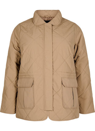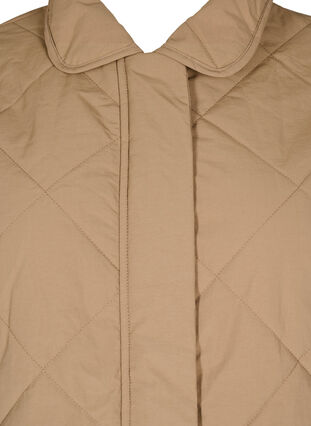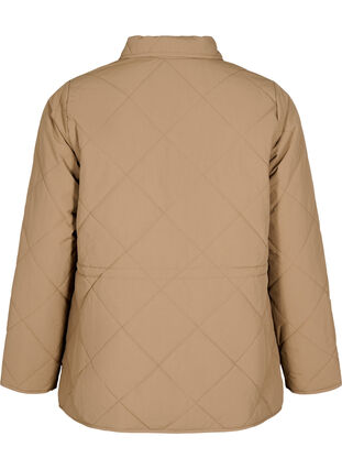 Steppjacke mit leichter Wattierung und eingenähtem Gummibund in der Taille für eine flexible und bequeme Passform. Die Jacke hat große Taschen auf der Vorderseite, einen Kragen und wird mit einem Reißverschluss und Druckknöpfen geschlossen.