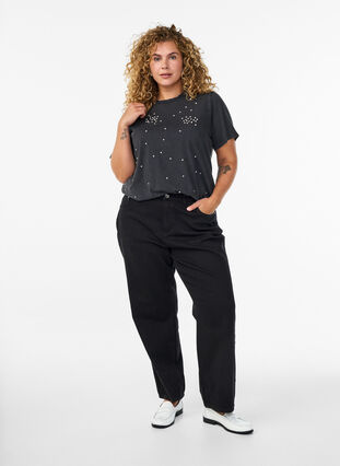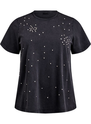 T-Shirt mit Strasssteinen in abgenutzter Optik