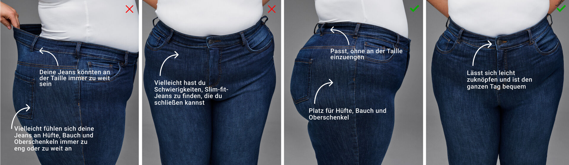 Scheinen deine Jeans nie richtig zu passen? Vielleicht sitzen sie an der Taille zu locker, fühlen sich an Hüfte, Bauch oder Oberschenkeln zu eng oder zu weit an, oder du findest einfach keine Slim-fit-Jeans, die du zuknöpfen kannst.