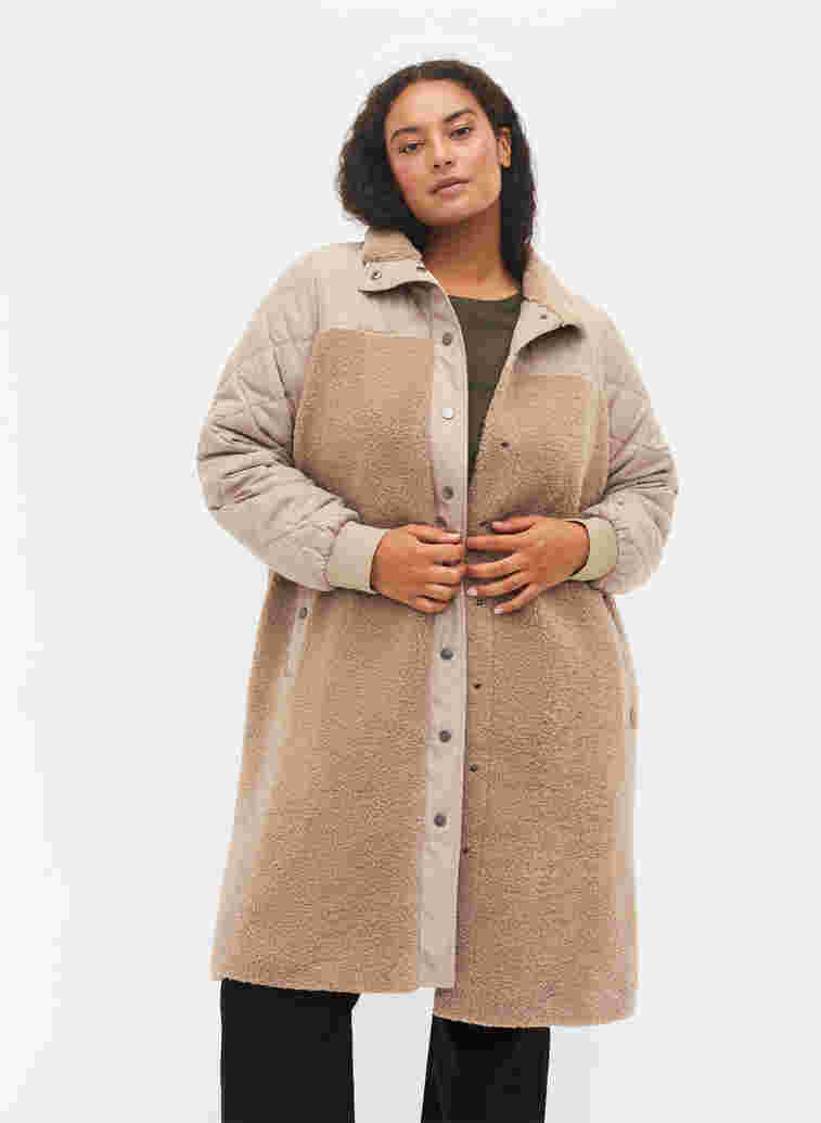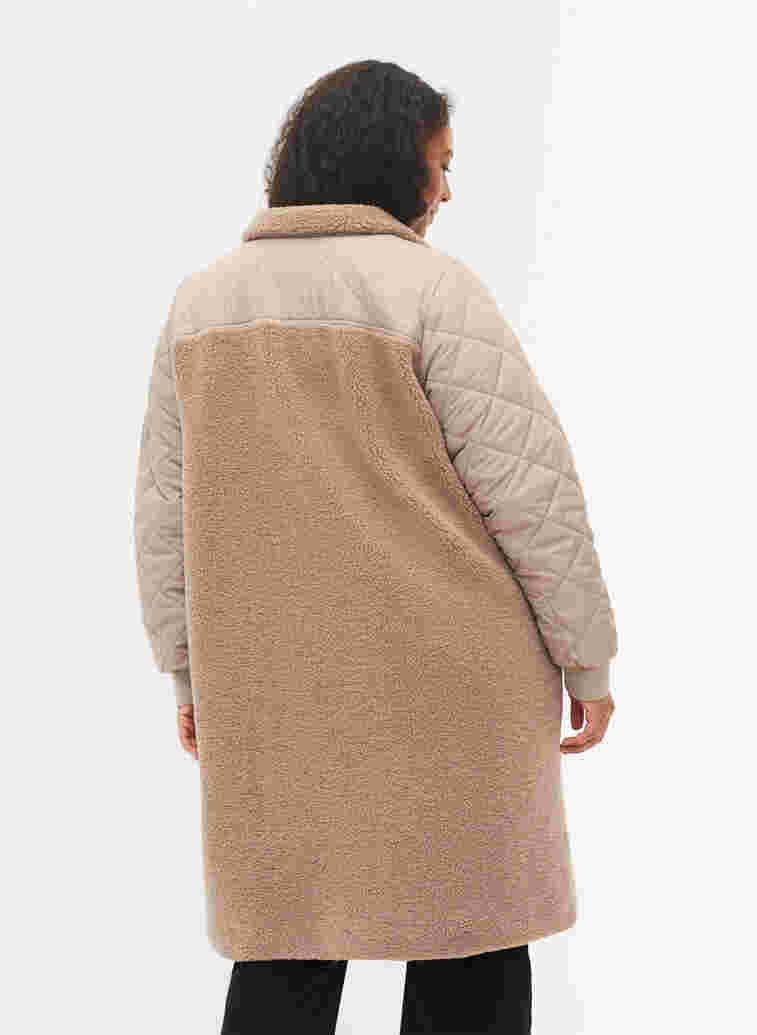 Zwei Trends, die wir bei der Oberbekleidung in dieser Saison wieder sehen, sind Steppdecken und Teddystoff. Beide einzeln, aber auch zusammen. Die beiden Trends ergänzen sich sehr gut, denn die verschiedenen Materialien und Stile haben ähnliche Funktionen, aber unterschiedliche Ausdrucksformen. Kombiniere die Jacke mit einem traditionellen Outfit aus Jeans und einer Strickbluse für einen echten Herbstlook.